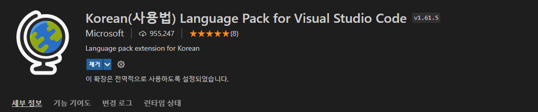 한국어 버전으로 VS Code를 사용할 수 있도록 해주는 확장 플러그인입니다.