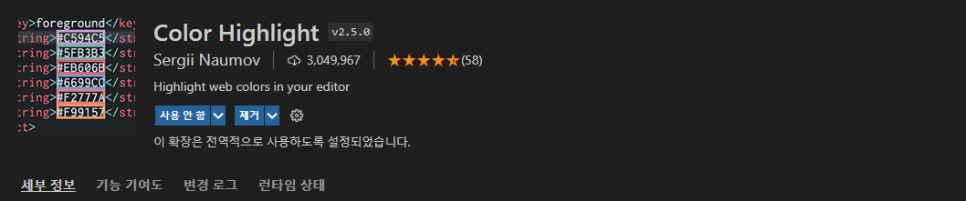 그리고 사용하고자 하는 확장 플러그인을 검색하여 설치하면 됩니다.